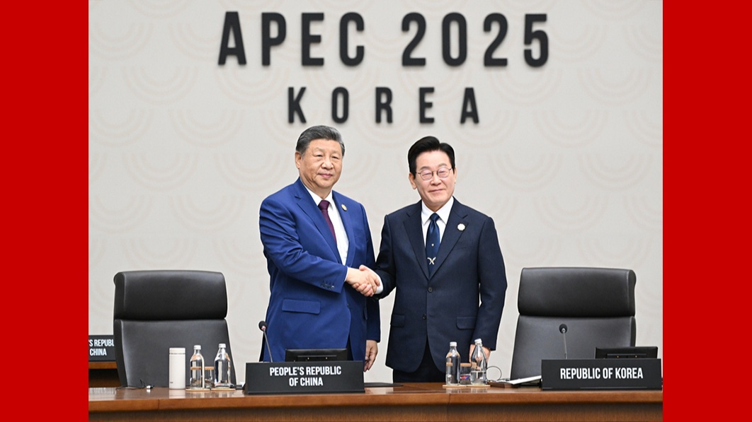 當地時間11月1日下午,韓國總統李在明同中國國家主席習近平在慶州博物館舉行會談。